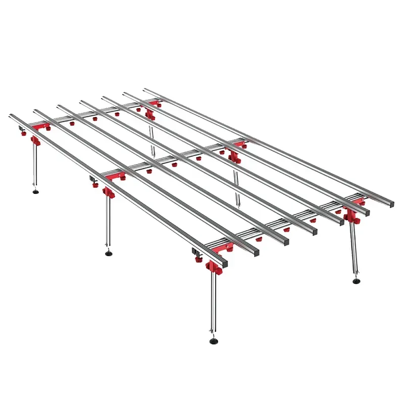 Робочий стіл Shijing P703 3600×1500 мм посилений (9 ніжок) – легкий універсальний стіл з алюмінієвого профілю, для зручності робіт при розкроюванні крупноформатної плитки, гіпсокартону та інших оздоблювальних матеріалів.